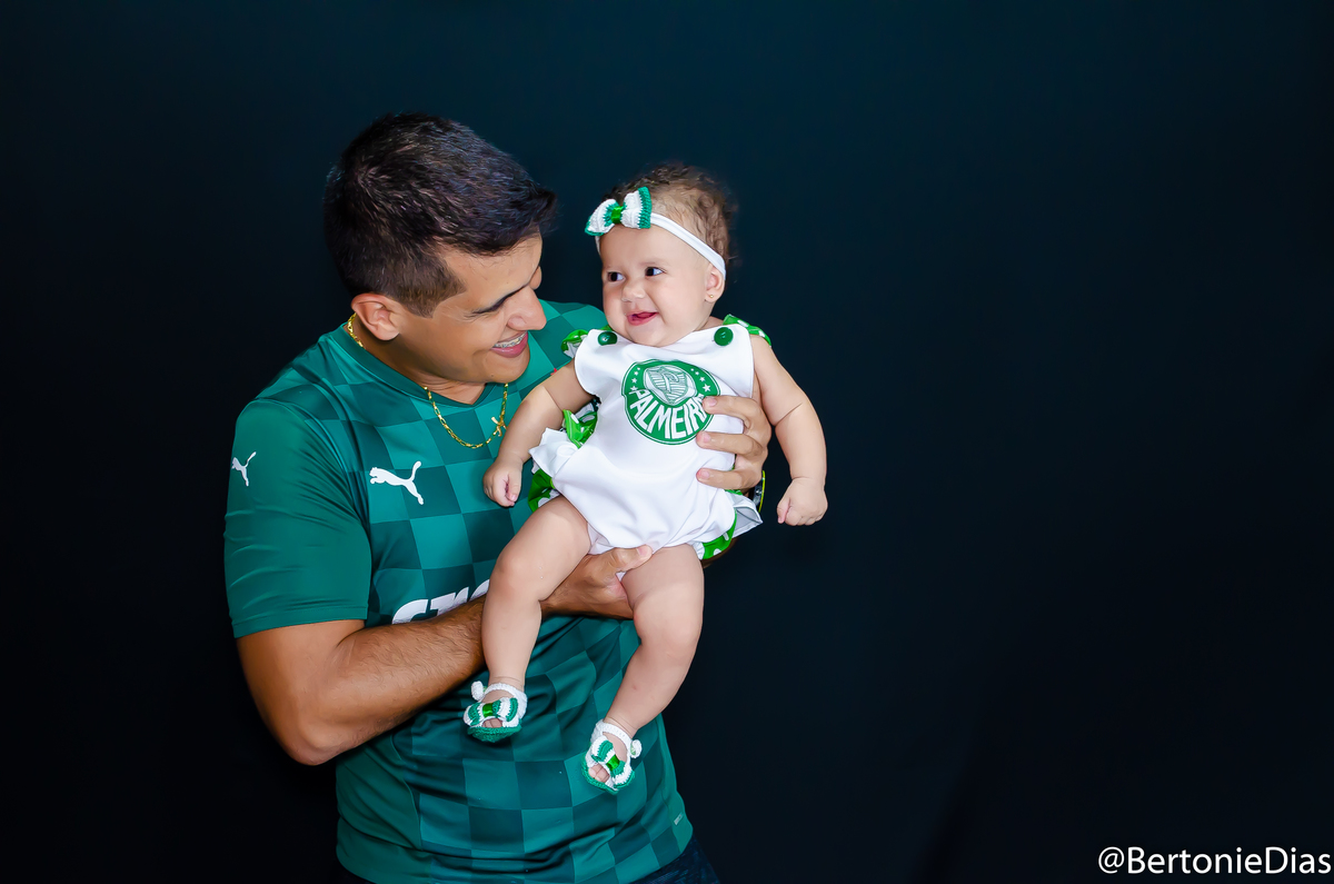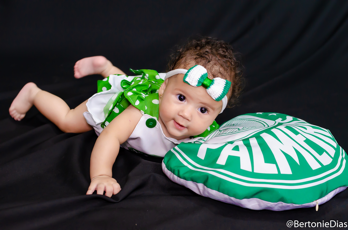 O tema escolhido dessa fez foi alvi - verde, isso mesmo, a família palmeirense homenageou o time do coração para celebrar o 5º mês da Sophia.