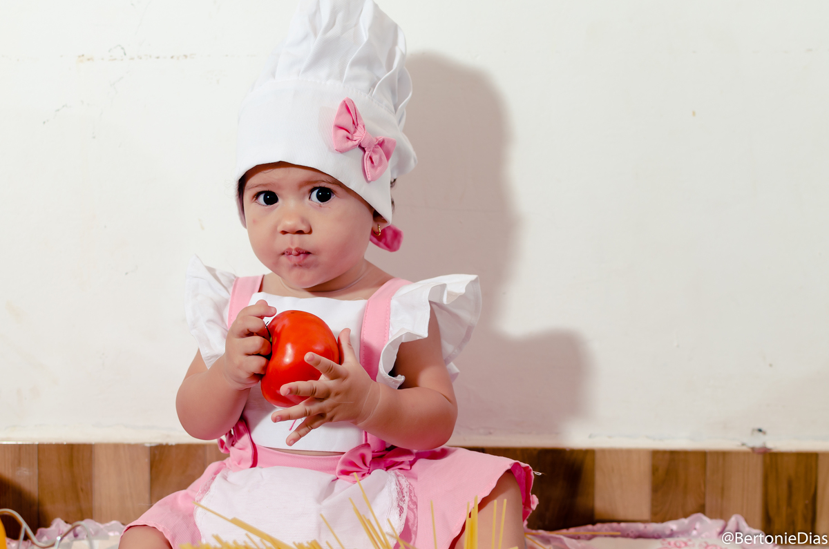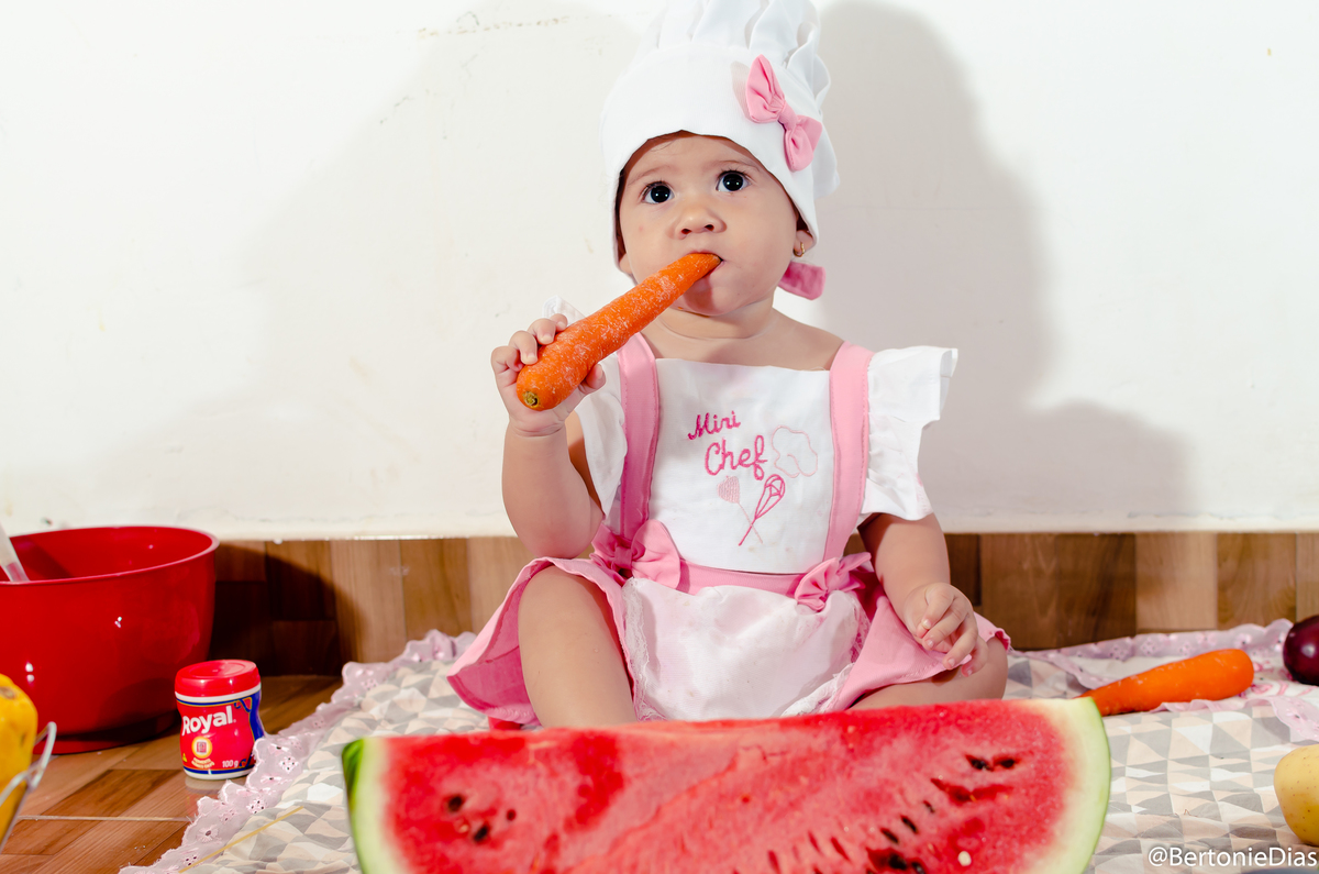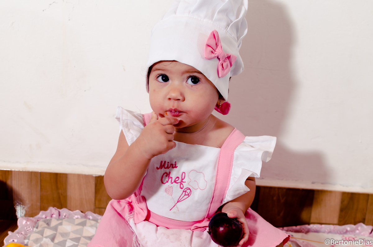 Nossa pequena modelo completou 11 meses e dessa vez ela atacou de Mini Chef, mas um ensaio fofo e cheio de guloseimas para encantar a mamãe querida.