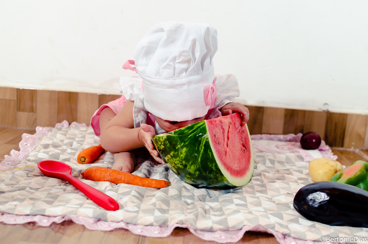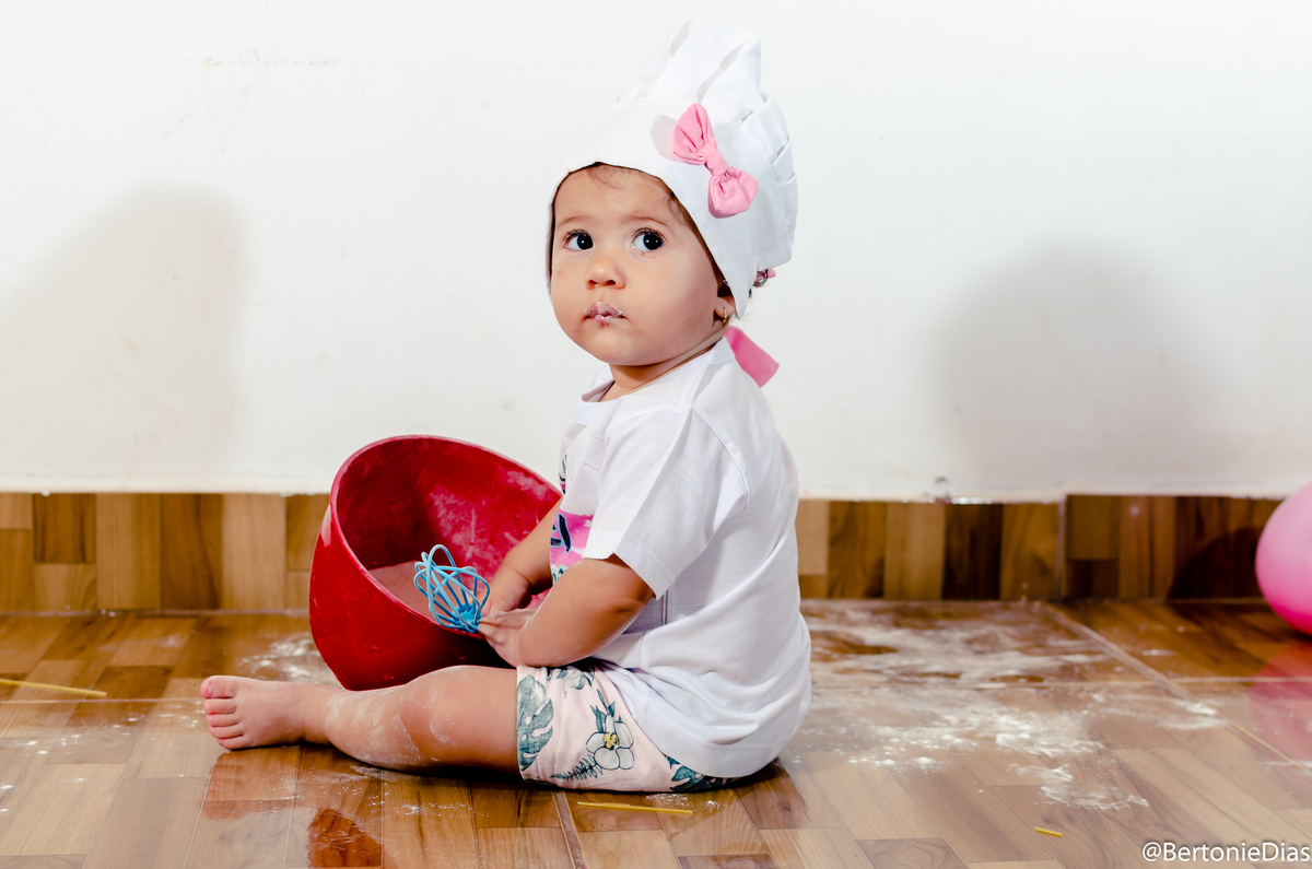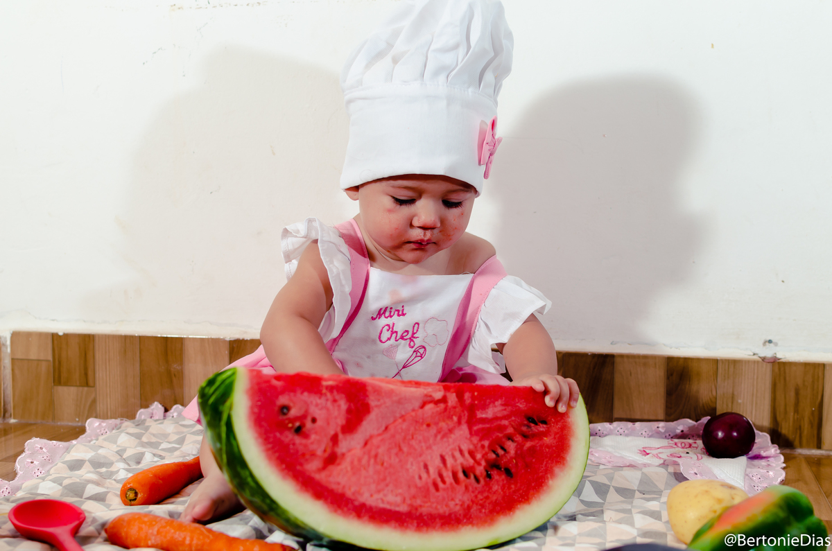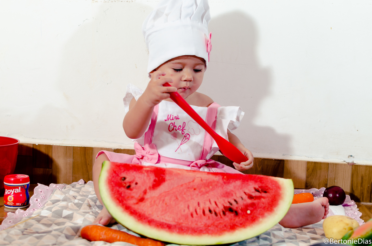 Nossa pequena modelo completou 11 meses e dessa vez ela atacou de Mini Chef, mas um ensaio fofo e cheio de guloseimas para encantar a mamãe querida.